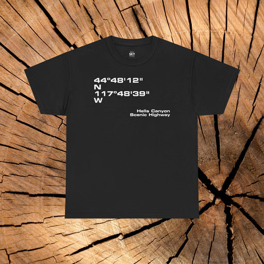 Hells Canyon Scenic Byway End Coordinates t-shirt (US)